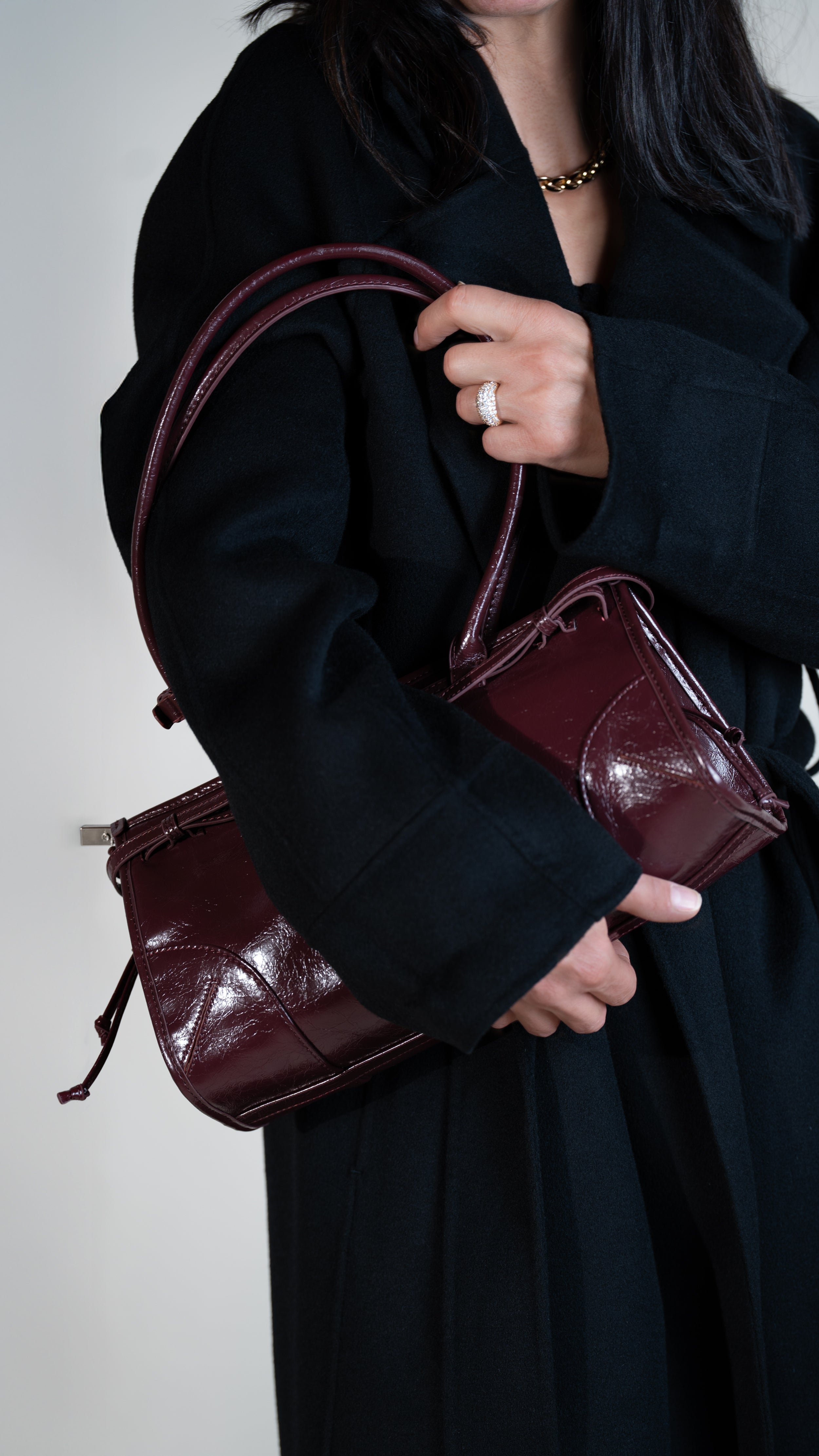 « L’amour du beau. Nos sacs à main, confectionnés avec soin en Italie, sont façonnés dans un cuir de veau de qualité décliné en différentes textures et teintes, pour vous accompagner avec raffinement, au fil du temps. »